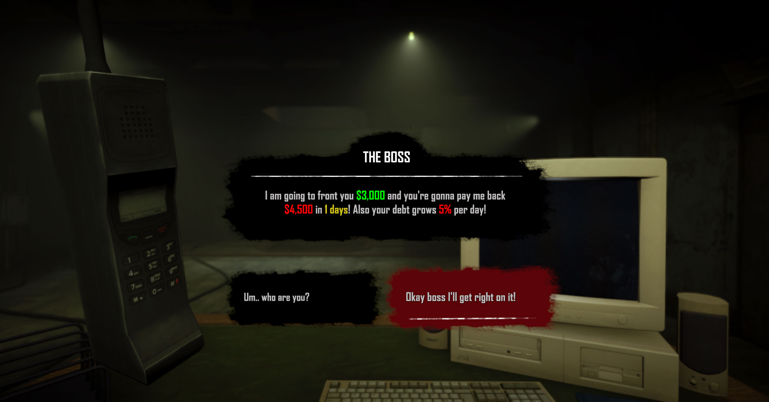 You wake up in a dark smelly basement. In front of you is a desk, a PC and a mobile phone. The phone rings... who is on the other side?